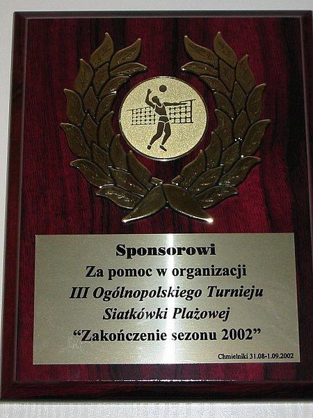 13. II miejsce w turnieju siatkówki o nagrodę „Zakładu Geodezyjnego A. Kosiak”, Bydgoszcz, Opławiec 27.04.2002 r.